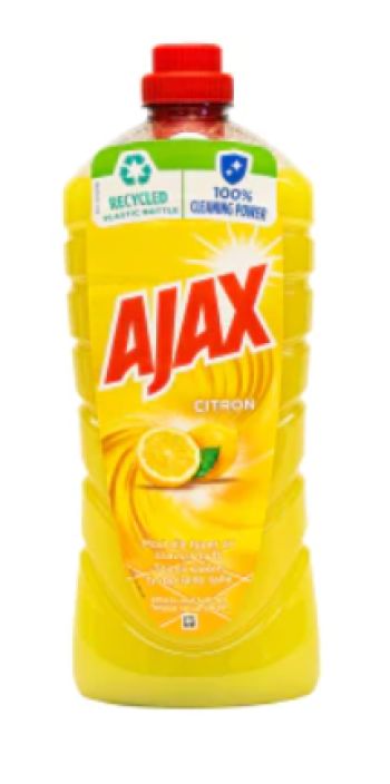 Ajax Lemon on tehokas yleispuhdistusaine joka tepsii kaikkeen likaan, eikä tarvitse erillistä huuhtelua. Puhdistuksen jälkeen pinnat ovat kiiltävän puhtaat ja tuoksuvat pirteän sitruunaisilta. Sen hellävarainen koostumus sopii myös marmorin, keramiikan ja vastaavien pintojen puhdistukseen.