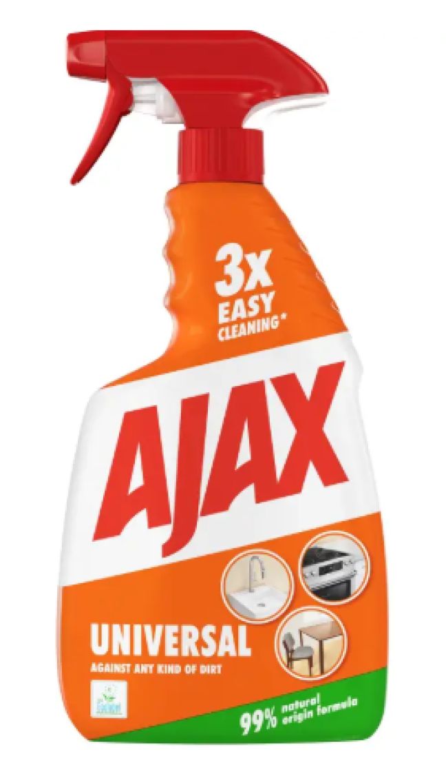 Ajax Universal on tehokas yleispuhdistussuihke, joka irrottaa rasvan ja kalkin tehokkaasti ja nopeasti, ja jättää peräänsä hygieenisen lopputuloksen! Tekee kotisi pinnoista kiiltävän puhtaita ja jättää peräänsä raikkaan tuoksun. Sopii kaikille keittiön ja kylpyhuoneen pinnoille.