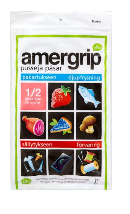 Amergripin salaisuus piilee laadukkaassa Minigrip®-sulkijassa. Pusseissa voit säilöä ruokaa, säilyttää ja kuljettaa. Pussit ovat käteviä pikkutavaroiden säilytykseen tai otettavaksi mukaan matkoille. Yhden litran Amergrip-pussi on matkakumppanina oivallinen – voit esimerkiksi kuljettaa lentokoneen matkustamossa nesteitä turvamääräysten mukaisesti.