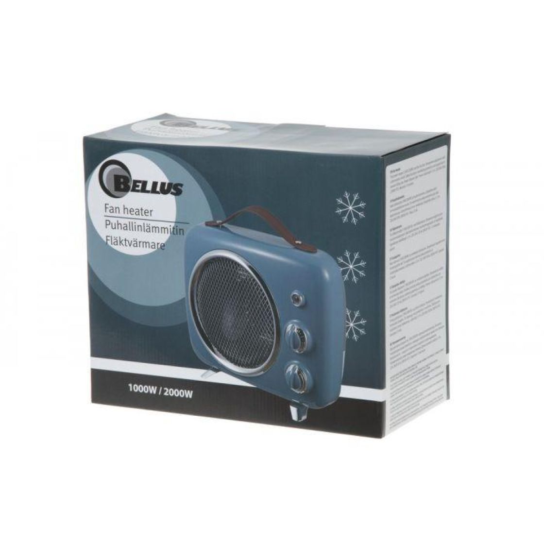 Tyylikäs, retrohenkinen puhallinlämmitin. Kaksi tehoaluetta (1000/2000W) ja tuuletintoiminto.
