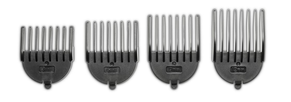 Hiustenleikkuri (4 kiinteää kampaa, pituudet 3, 6, 9, 12 mm)