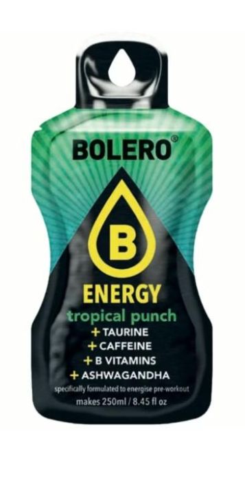 Bolero Energy Tropical Punch tarjoaa herkullisen trooppisen maun, mutta myös tasapainoisen sekoituksen ravintoaineita ja uutteita tukemaan sinua päivittäisissä puuhissasi.
