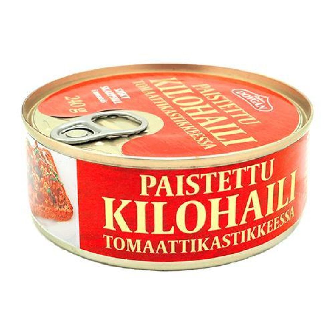 Paistettu KILOHAILI (sprattus sprattus) 70%, vesi, tomaattipyree 9%, sokeri, VEHNÄJAUHO, suola, rapsiöljy, sipulijauhe, happamuudensäätöaine: (etikkahappo), mausteet.