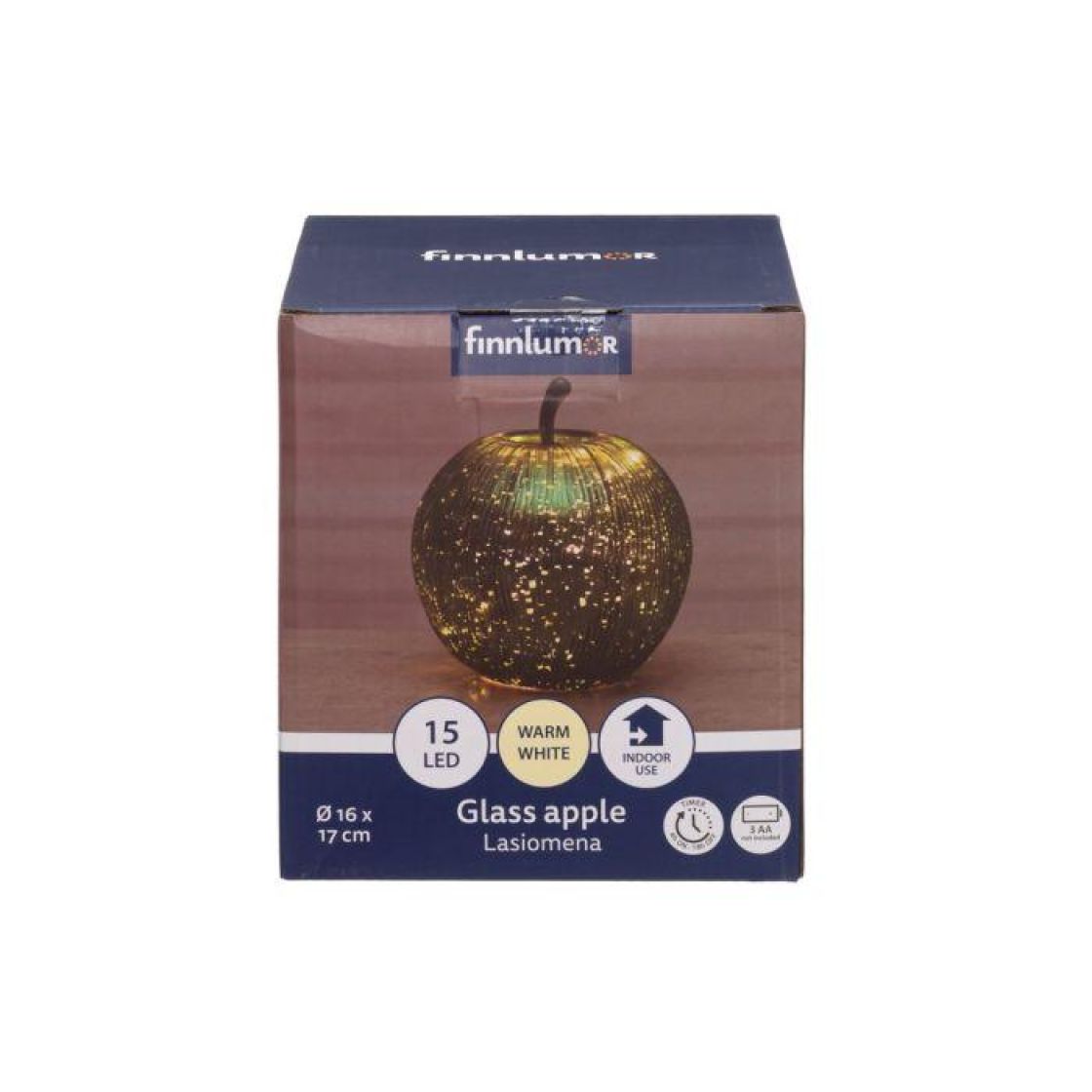 Finnlumor lasiomena vihreä LED-valoilla