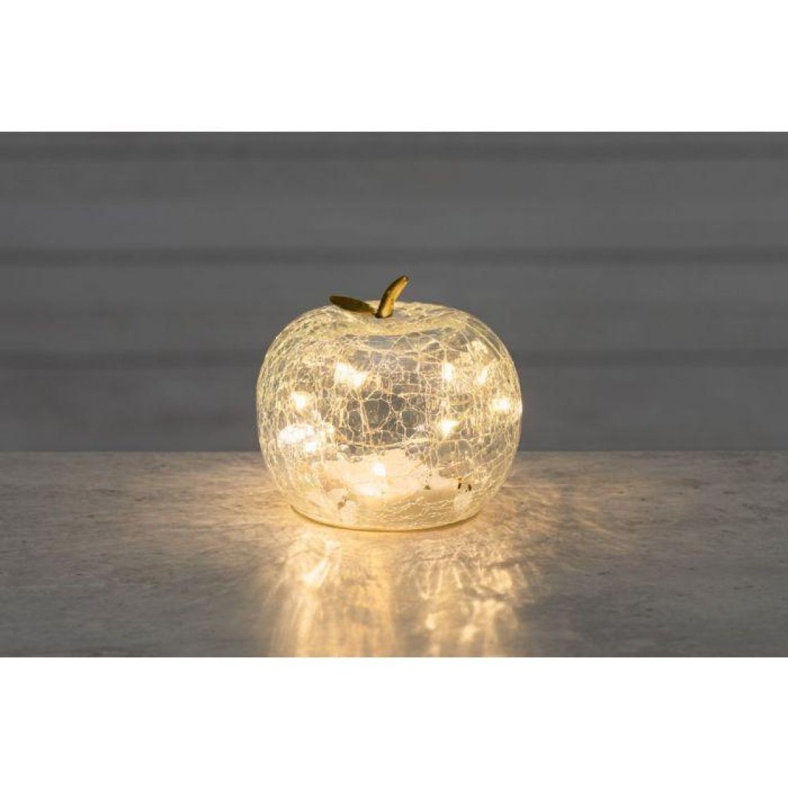Kaunis lasista valmistettu koristeomena. Omenan sisällä 10 lämmin valkoista LED-valoa.