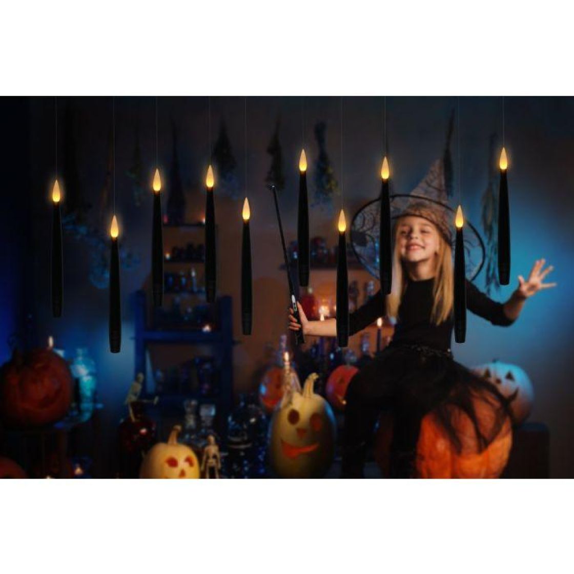 Maagisen tunnelman luominen on helppoa leijuvilla kynttilöillä.10 kpl:n sarja paristotoimisia mustia LED- antiikkikynttilöitä.