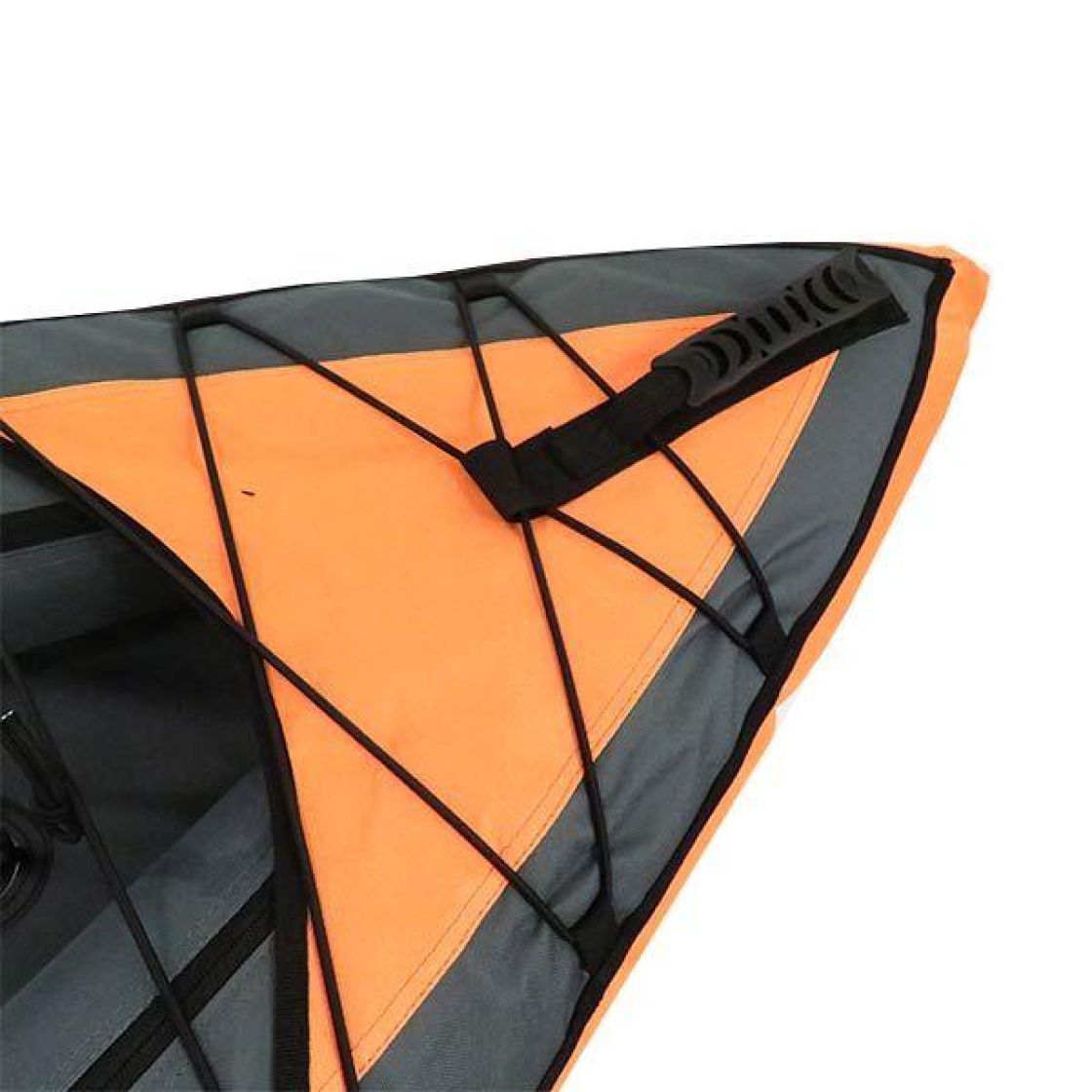 Kajakin kantokahvoista on vain 15 kg painoista kajakkia helppo kantaa rannasta tai joella melottaessa kankaiden yli. Cargo-verkkossa säilytät päiväreissun tarpeet ja tavaran.