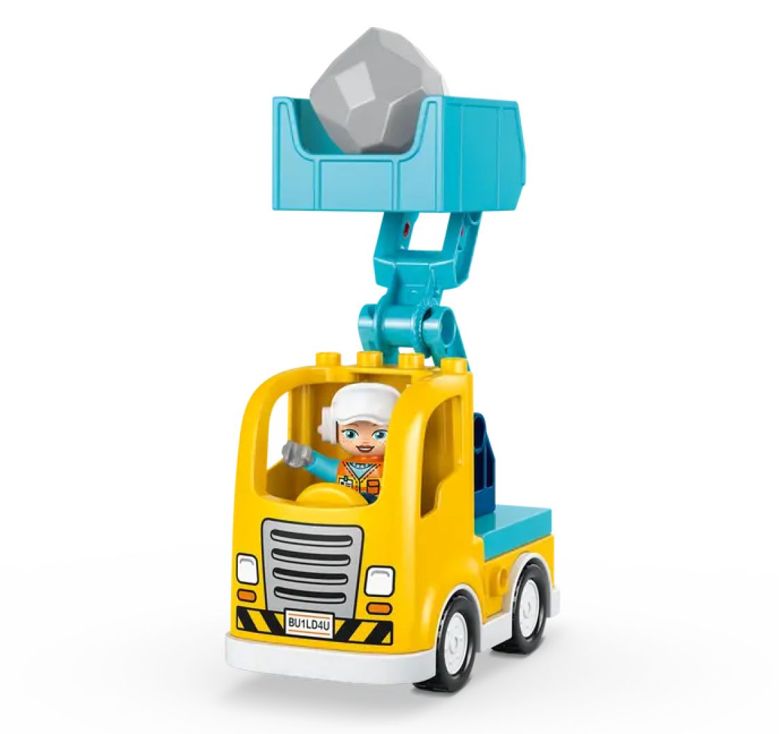 Tässä LEGO DUPLO rakennussetissä on 22 palikkaa, joista voi rakentaa 3 erilaista ajoneuvoparia: kuormaajan, jonka kallistuvalla kauhalla voi laittaa palikoita kippiauton kyytiin, kaivinkoneen ja hinausauton, jossa on kääntyvä puomi, tai saksinostolavan ja toisen hinausauton, jonka pienellä koukulla voi nostaa palikoita. Kokeillessaan erilaisia ratkaisuja eri ajoneuvojen rakentamiseksi lapset pääsevät käyttämään luovuuttaan, ongelmanratkaisukykyään, sinnikkyyttään ja hienomotorisia taitojaan.