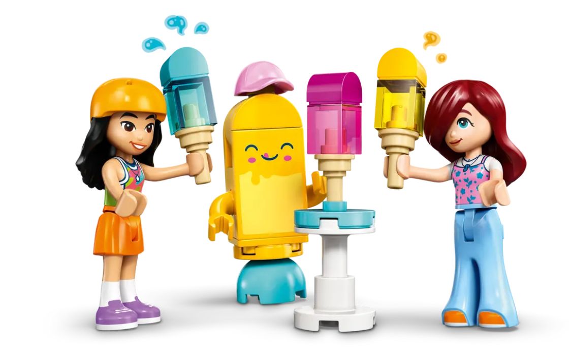 Mielikuvitusleikkeihin innostava lelu sisältää hauskoja yksityiskohtia ja söpöjä tarvikkeita. Liannin ja Paisleyn mininukkehahmot auttavat lapsia uppoutumaan tarinaan, kun he valmistelevat kojun ilmapallojen ja jäätelön myyntiä varten. Liannilla on kypärä, jotta hän voi ajaa polkupyörällä ja vetää jäätelökojua. Leikit jatkuvat hurmaavan mehujäämaskotin, tuoteluettelon, kassakoneen ja puhelimen parissa. Mukana on myös pöytä, jonka ääressä ystävät viettävät aikaa yhdessä.
