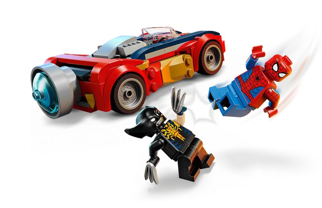 Ajoneuvon mukana tulevat Spider-Manin ja Venomiksi muuttuneen Wolverinen minihahmot, jotka innostavat lapsia vauhdikkaisiin LEGO® ǀ Marvel leikkeihin. Tämä on ensimmäinen LEGO ǀ Marvel setti, jossa on mukana Venomiksi muuttuneen Wolverinen minihahmo. Taistelutoiminta tapahtuu Spider-Manin autossa ja sen lähettyvillä. Auton etuosassa olevat 2 jousiasetta voi laukaista takaosassa olevalla laukaisimella.