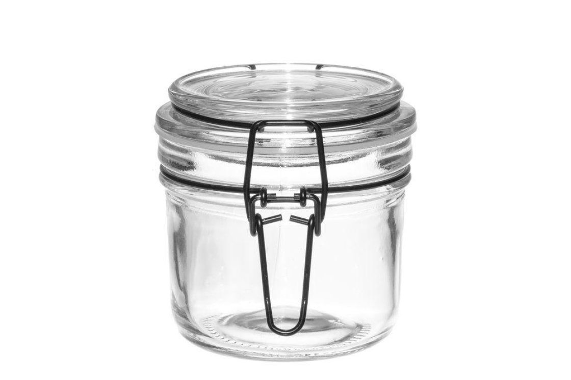 Säilytyspurkissa on kaunis musta sulkumekanismi.