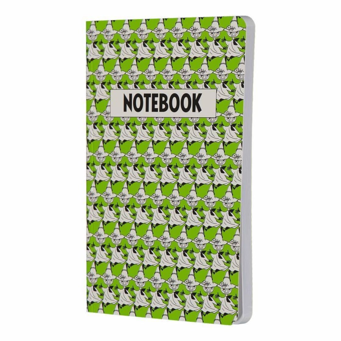 Raidallinen muistikirja Nuuskamuikkunen-kuvioinnilla.