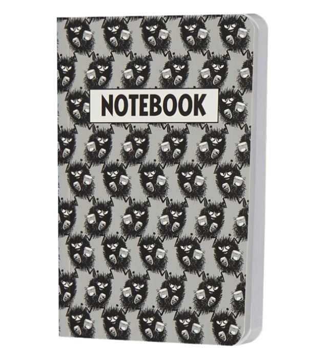 Koko A6, 80 lehteä. Kannet laminoitua kartonkia.