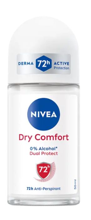 NIVEA Dry Comfort Deo Roll-on -antiperspirantti antaa tehokkaan ja luotettavan 72 tunnin antiperspiranttisuojan, joka hoitaa ihoa. Kaksivaikutteinen koostumus sisältää kaksi antibakteerista vaikuttavaa ainetta ja 0% etyylialkoholia.
