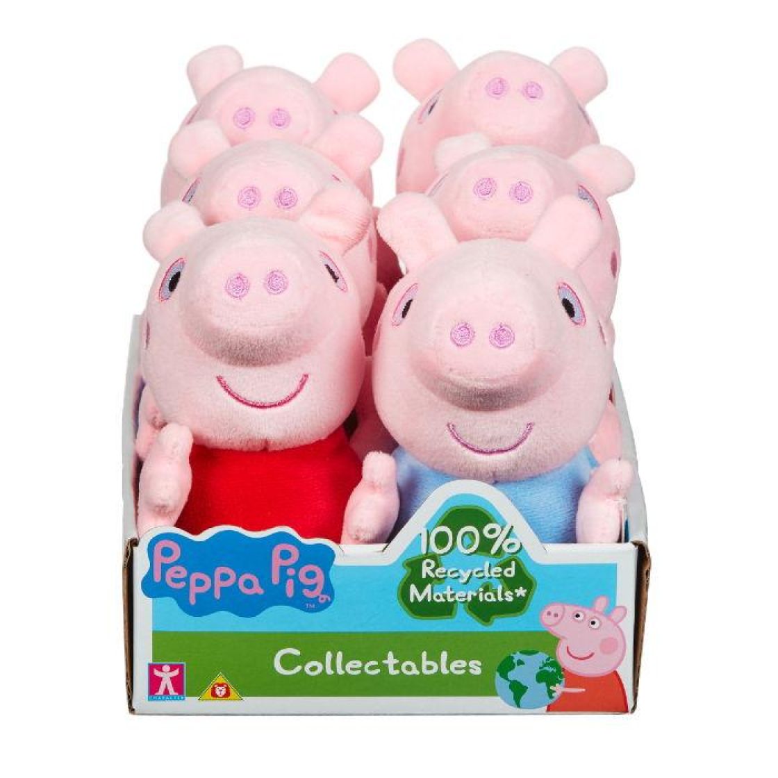 Peppan Eco-sarjan halailtavat pehmolelut ovat erinomaisen laadukkaita ja valmistettu 100% kierrätetyistä materiaaleista. Nämä ympäristöystävälliset lelut, jotka on suunniteltu nuorille Pipsa-faneille, pysyvät uskollisina klassiselle Pipsa-tyylille ja pyrkivät tekemään leikkimisestä superpehmeää ja hauskaa.