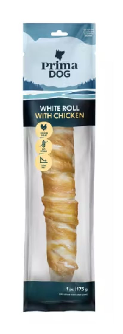 PrimaDogin Kanapururulla on klassinen koiran puruluu herkullisella lisällä, sillä sen naudannahkainen sisus on päällystetty maistuvalla kanafileellä. Tämän vuoksi kanapururullia kannattaa tarjota nirsommallekin karvakaverille!