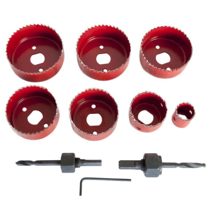 7 x reikäsaha: 22 mm, 28 mm, 35 mm, 44 mm, 51 mm, 57 mm, 67 mm