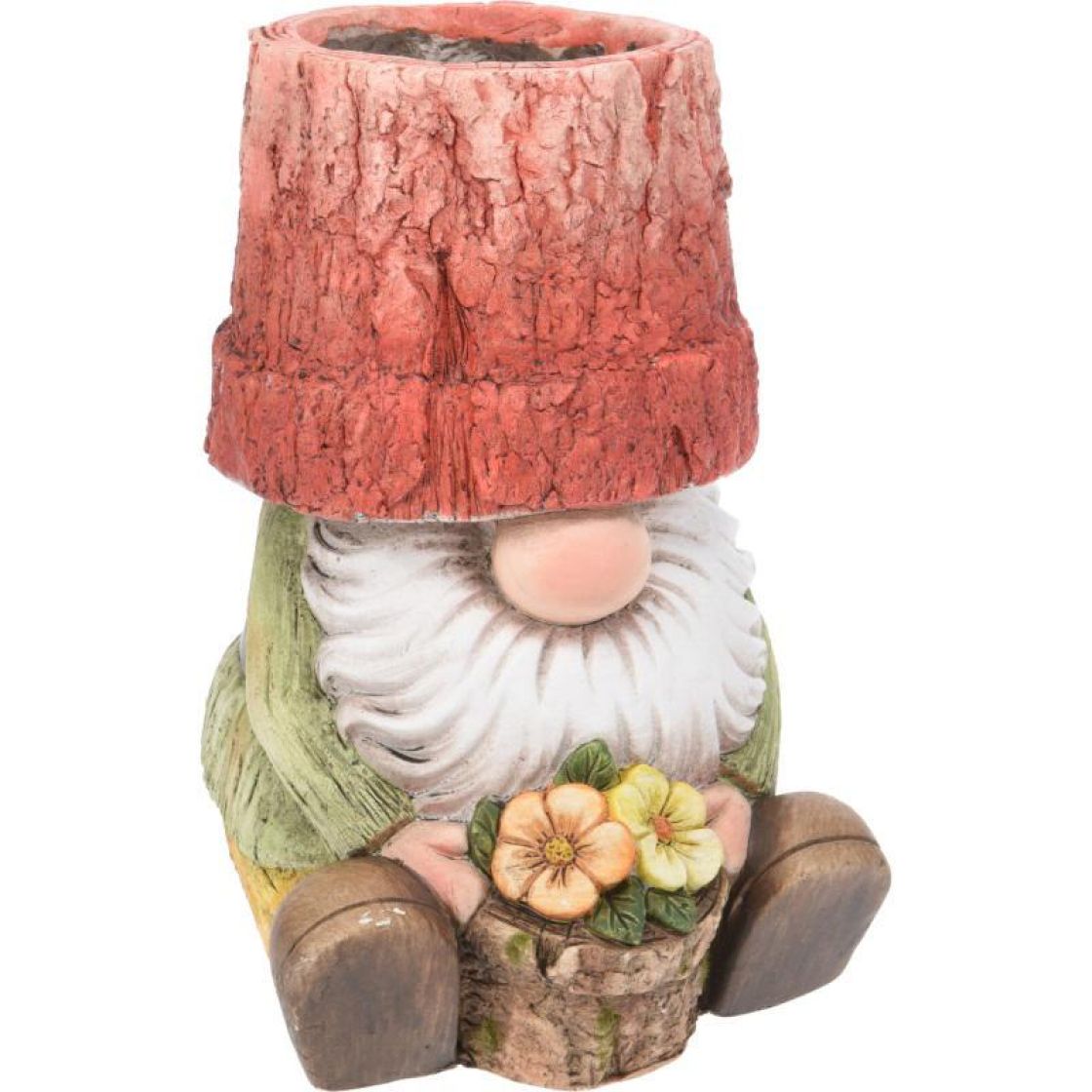 Puutarhatonttu jossa koriste ja ruukku samassa.