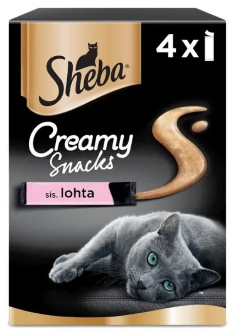 Sheba Creamy Snack on kermainen tahnaherkku kissoille jonka voi antaa sellaisenaan tai esimerkiksi ruoan kanssa. Suositus annos on korkeintaan pussi päivässä.