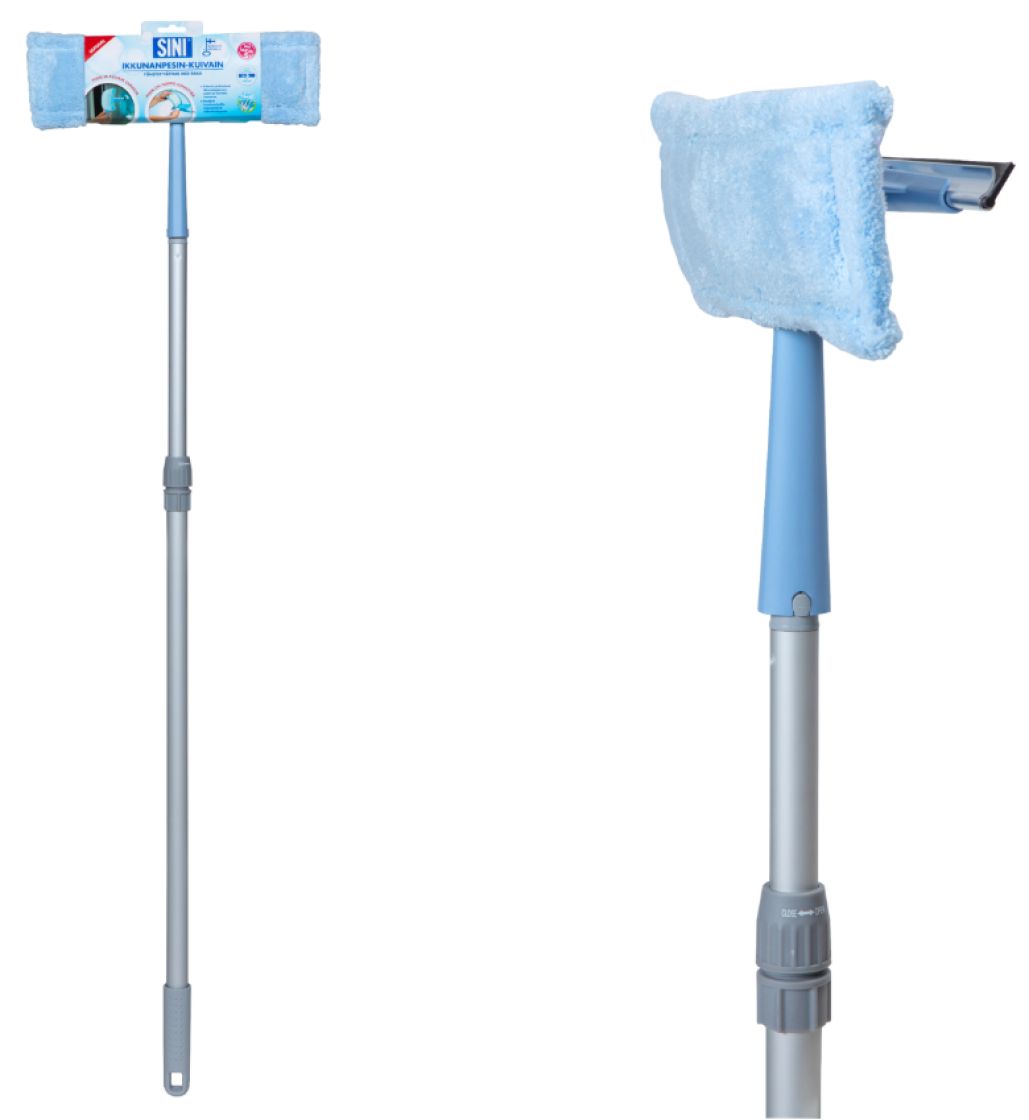Teleskooppivarrellinen ikkunanpesin-kuivain on kätevä yhdistelmä, jolla saa pestyä ja kuivattua ikkunat ja muut lasipinnat välineitä vaihtamatta, myös korkealta.