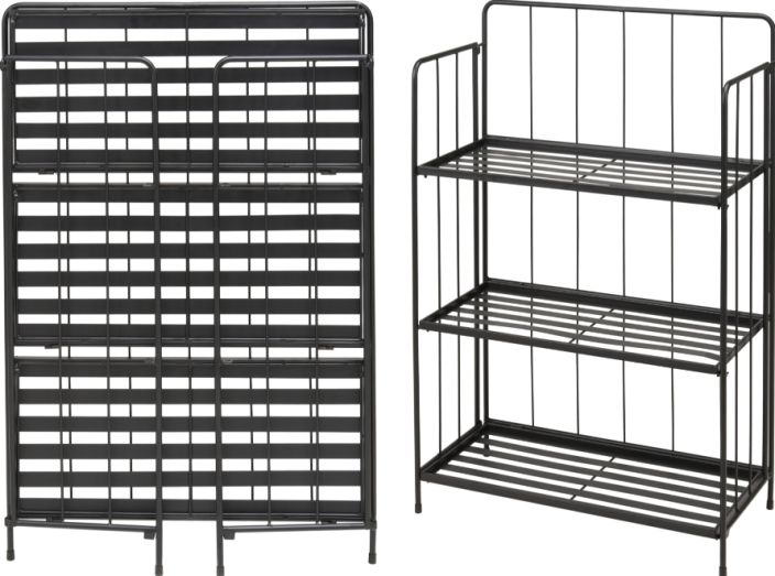 Metallinen kasaantaitettava taimihylly.