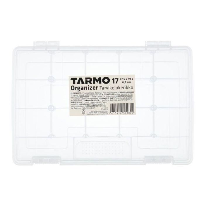 Monikäyttöinen lokerikko, jossa on 17 lokeroa ruuveille, muttereille yms. pientarvikkeille.