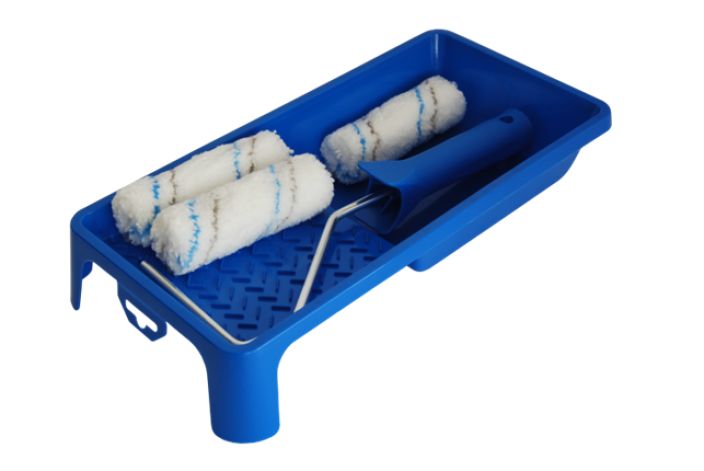 Telasetti sisältää kolme 10cm leveää mikrokuitutelaa, pistotelanvarren sekä maalikaukalon.