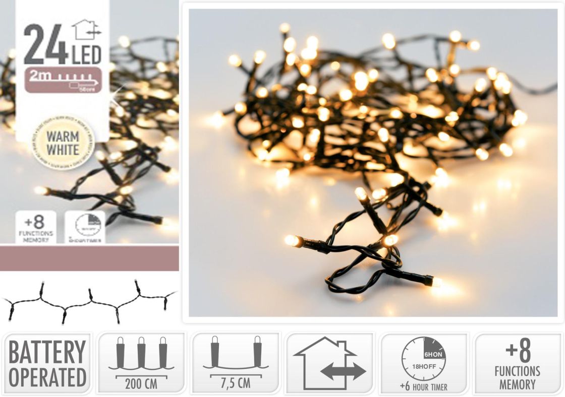 Sisäänrakennetun ajastimen ansiosta valot sammuvat automaattisesti 8 tunnin käytön jälkeen ja syttyvät uudelleen 16 tunnin kuluttua. Esimerkiksi, jos asetat valot päälle klo 16, ne sammuvat klo 24 ja syttyvät taas seuraavana päivänä samaan aikaan.