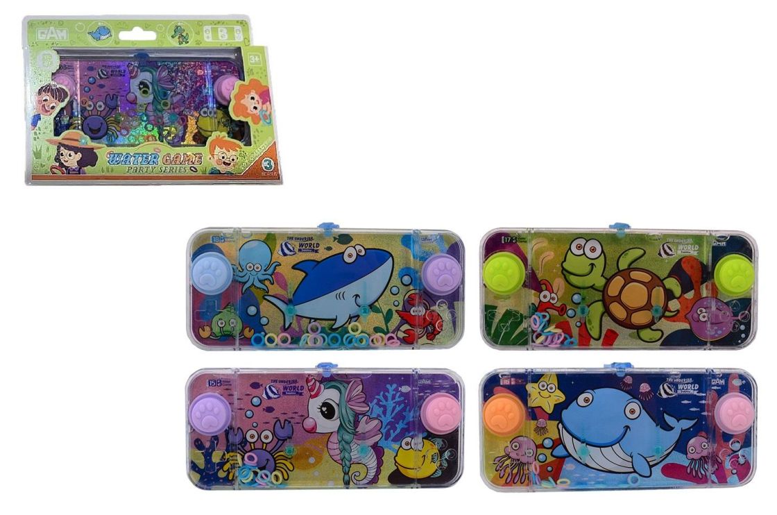 Käsipelien klassikko! Tuotteessa vettä sisällä ja nappeja painelemalla yritettävä saada kaikki renkaat tappeihin! Lajitelmassa eri teemoja.