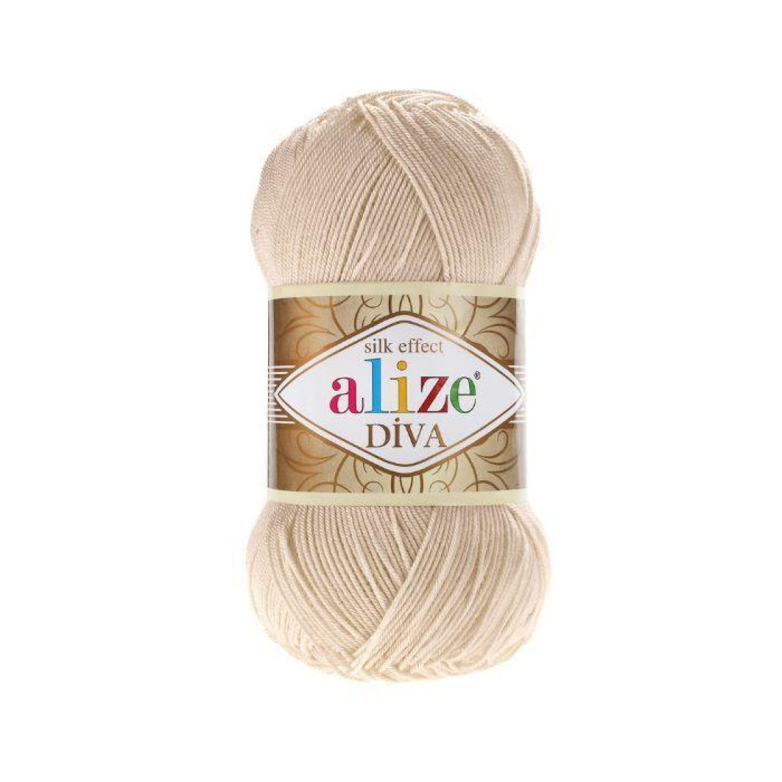 Alize Diva on korkealaatuinen, 100 % mikrokuituisesta akryylista valmistettu lanka, joka ihastuttaa silkkisellä kiillollaan ja pehmeällä tunnullaan. Hengittävä ja kevyt rakenne tekee siitä oivan valinnan kevään ja kesän neuleisiin sekä virkkaustöihin.