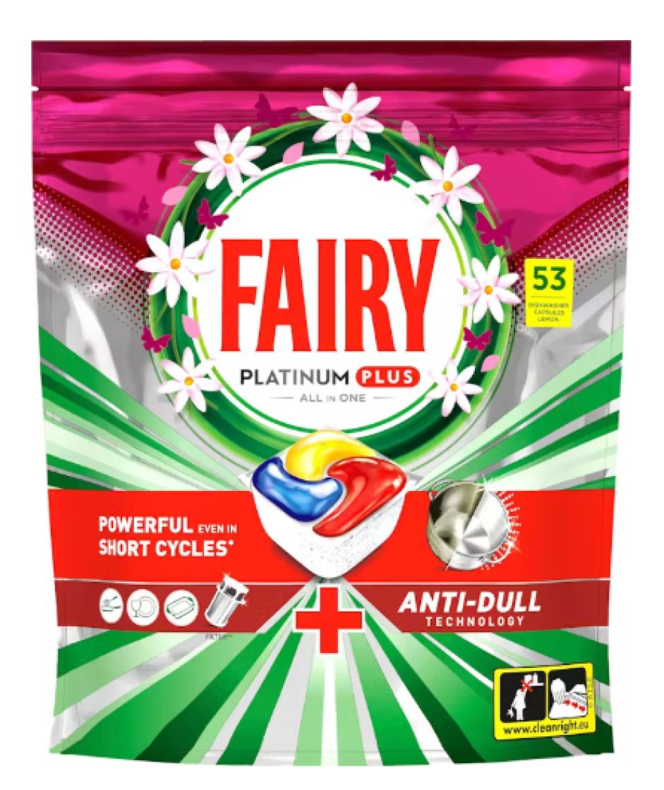 Fairy Platinum Plus Lemon Spring anti-dull konetiskitabletit 53kpl