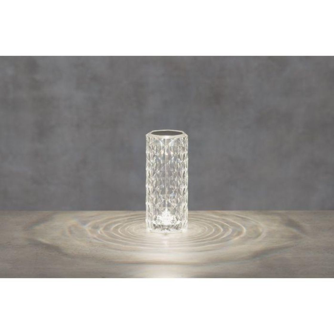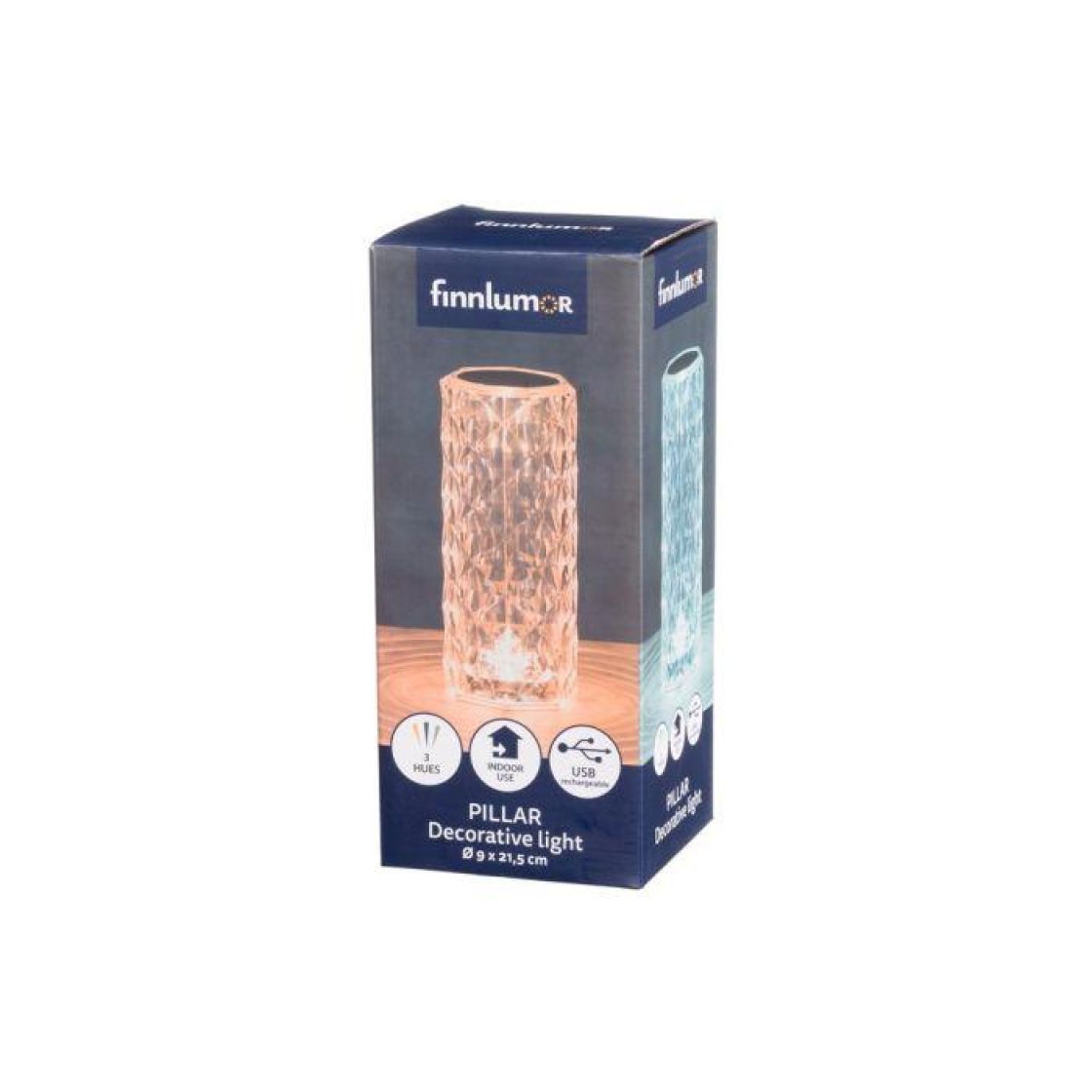 Pilarin muotoinen valaisin on valmistettu akryylista ja se luo ympärilleen kauniin valokehän. Kolme valkoisen eri sävyä on vaihdettavissa koskettamalla hipaisukytkintä. USB-ladattava koristevalaisin on helppo sijoittaa minne vain.