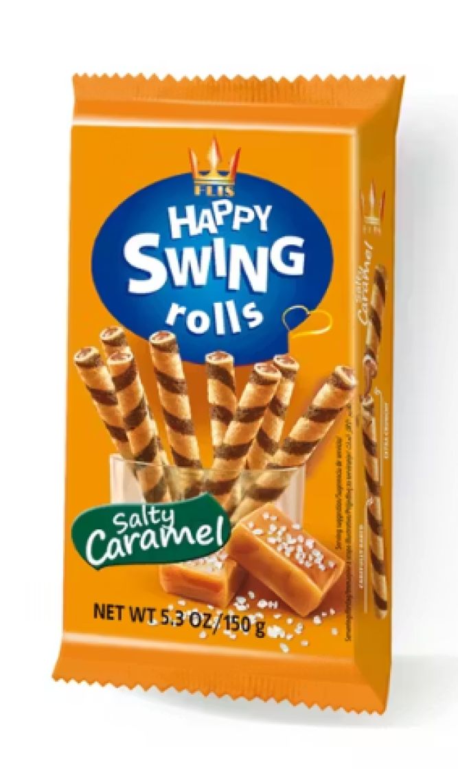 Herkulliset vohvelirullat salty caramel- eli suolakinuskin makuisella täytteellä.
