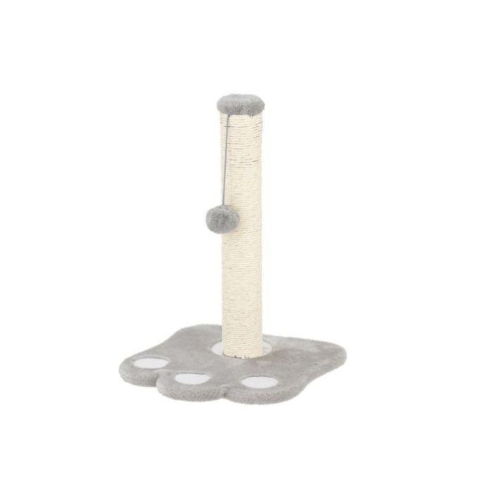 Tolppa on verhoiltu kestävällä sisalhampulla ja sen päästä roikkuu leikkiin houkutteleva pallo.