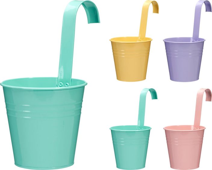 Metallinen kukkaruukku koukulla. Korista terassia tai parvekkeen kaidetta helposti värikkäillä, ripustettavilla kukkaruukuilla.