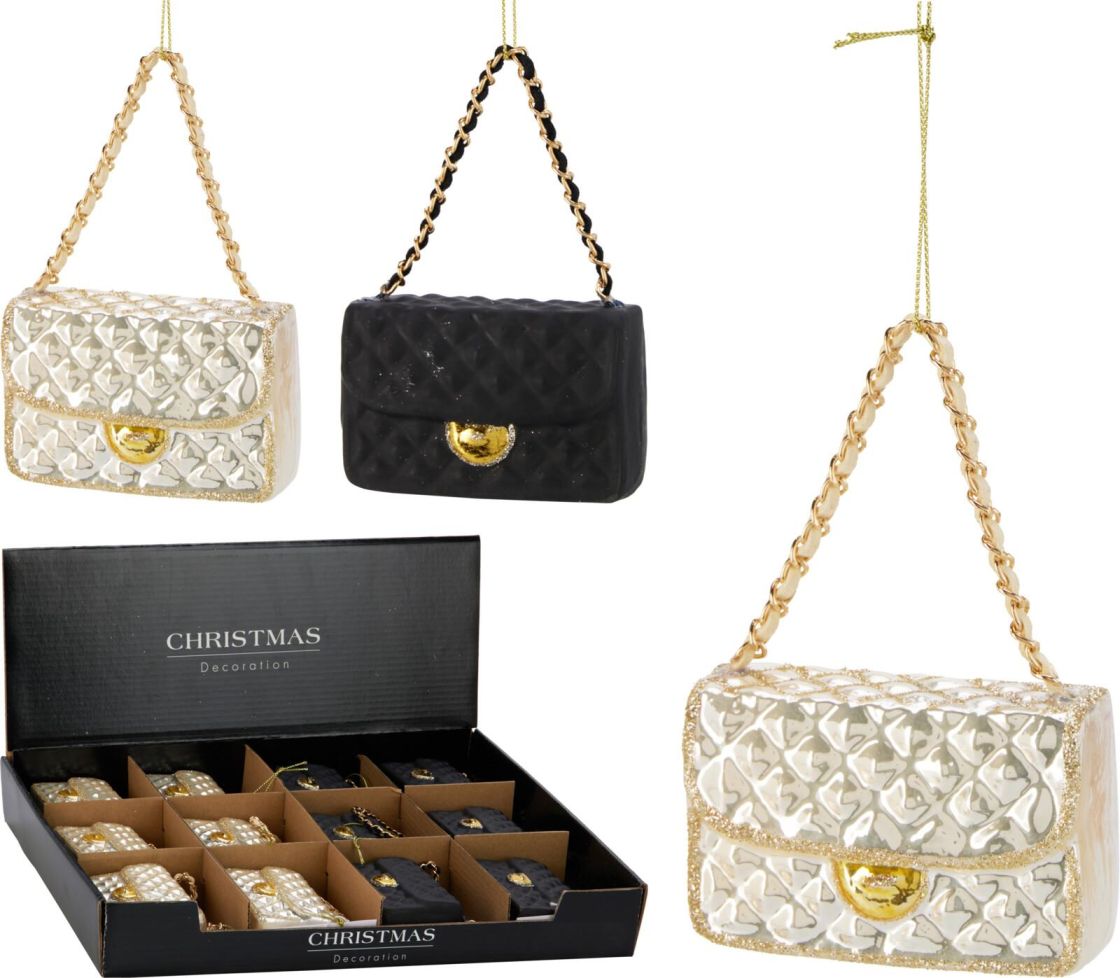 Muodin ystävälle tyylikäs käsilaukku-kuusenkoriste.