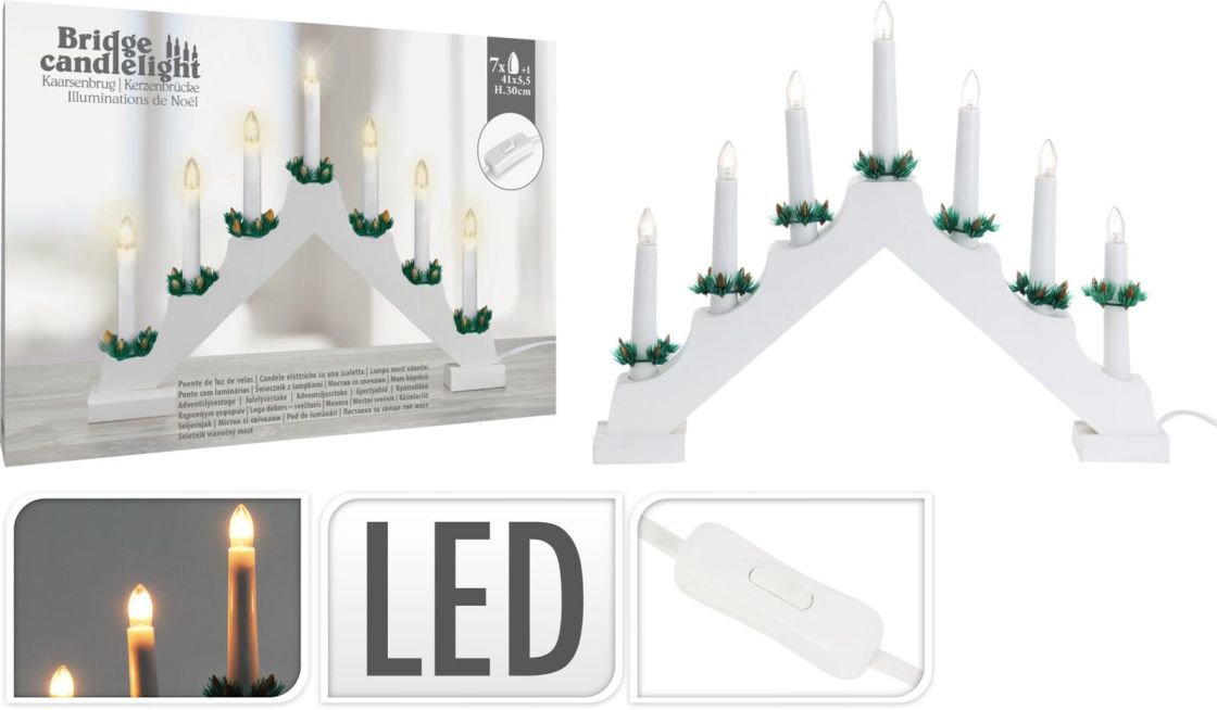 Tyylikäs ja ajaton valkoinen kynttelikkö, joka on valmistettu puusta. Kynttelikössä on seitsemän lämpimän valkoista LED-kynttilää, jotka luovat kauniin ja rauhallisen valon kotiin.