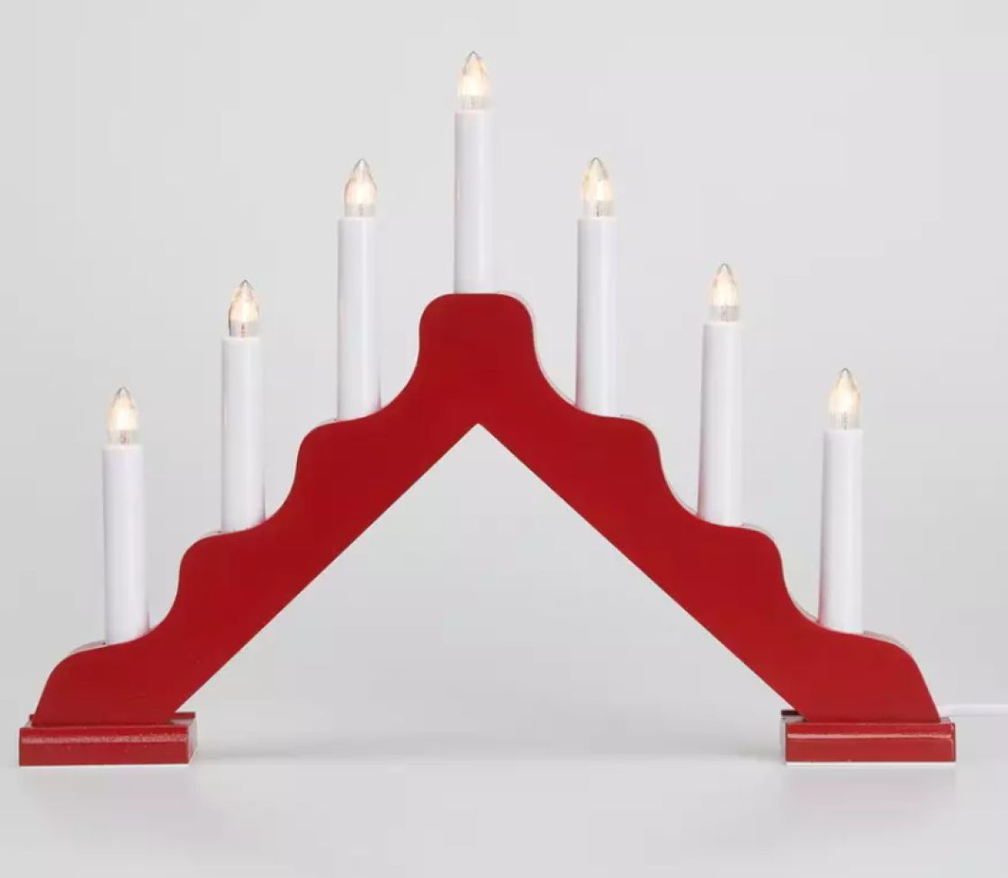 Tyylikäs ja ajaton punainen kynttelikkö, joka on valmistettu puusta. Kynttelikössä on seitsemän lämpimän valkoista LED-kynttilää, jotka luovat kauniin ja rauhallisen valon kotiin.