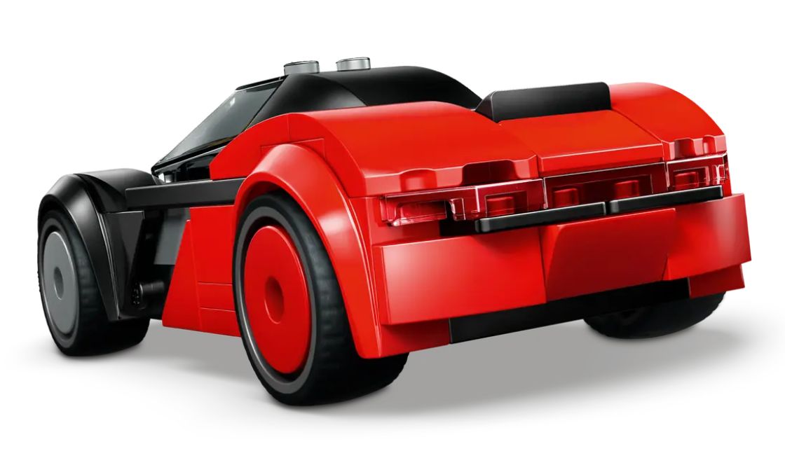 Helposti rakennettava sähköurheiluauto sopii niin koristeeksi kuin leikkeihin. Siinä on runsaasti realistisia yksityiskohtia, kuten virtaviivainen ja aerodynaaminen kori, punamusta väritys, matalaprofiiliset kumirenkaat, takavalopalkki ja sävytetty ohjaamon katto. Avattavan takaluukun kautta lapset pääsevät käsiksi leluauton akkuun.