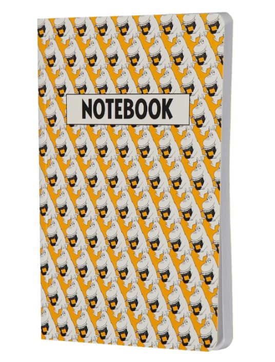 Viivoitettu muistikirja Muumipeikko-kuvioinnilla.