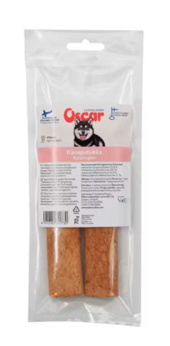 Viljaton kanaherkku koirille – maukas ja kotimainen täydennysrehu, joka hemmottelee koiraasi arjen keskellä. Valmistettu Suomessa tuoreesta suomalaisesta kanasta, tämä herkkutikku on hellävaraisesti käsitelty, jotta lihan luonnollinen ja herkullinen maku säilyy.