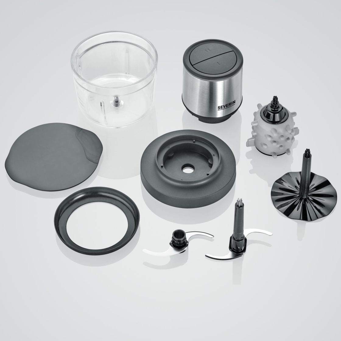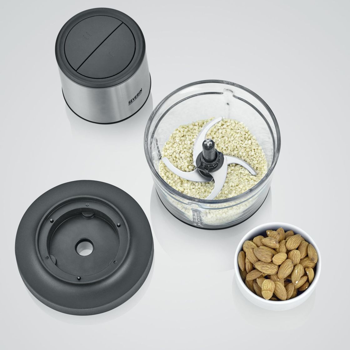 Silppurissa on astianpesukoneen kestävä lasisäiliö kannella, jossa voi myös säilyttää ruoan suoraan jääkaapissa.