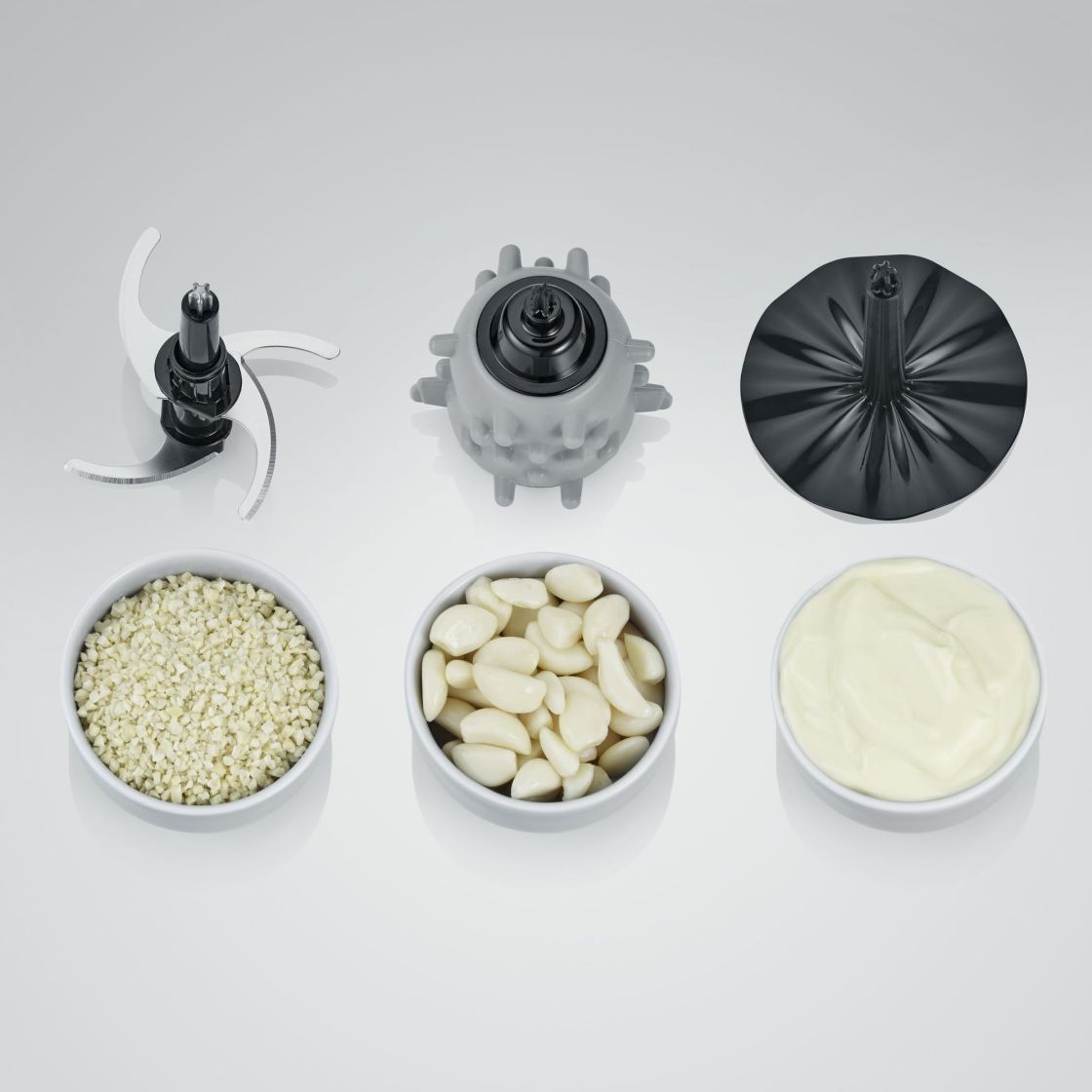 -Neliteräinen veitsi esimerkiksi yrttien, sipulien, lihan, juuston, pähkinöiden tai jään murskaamiseen ja silppuamiseen.