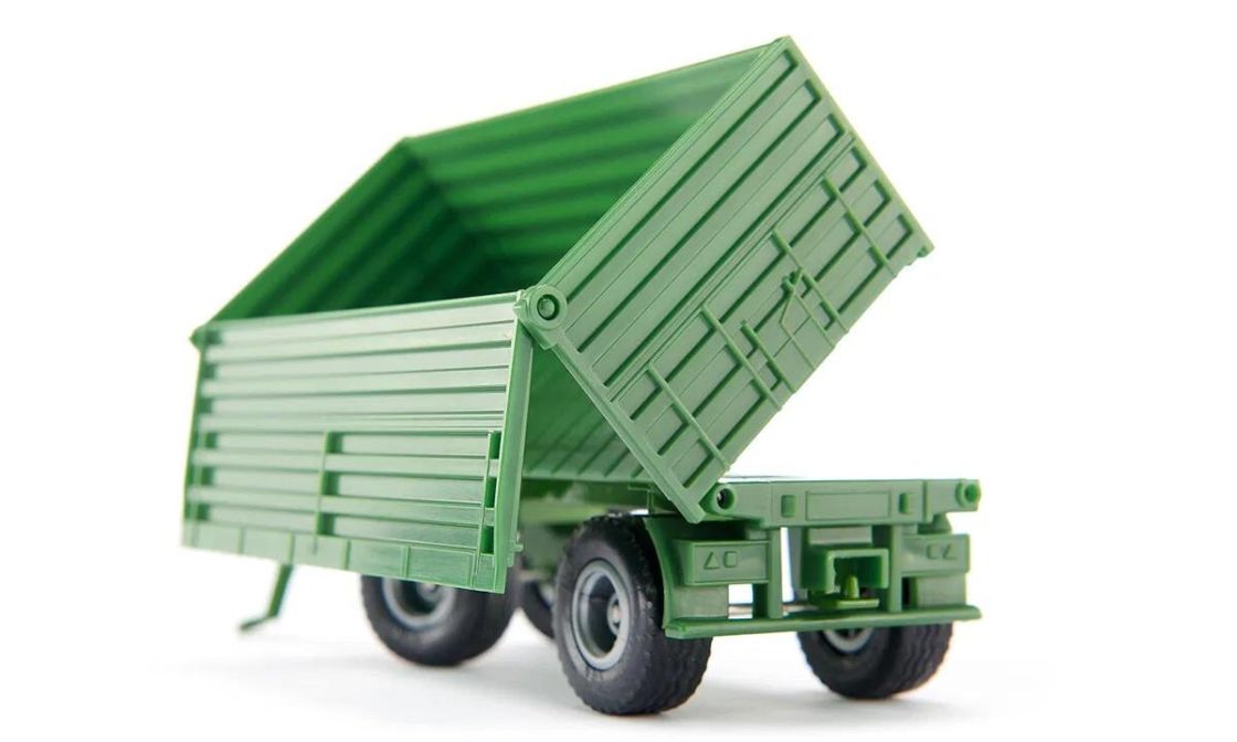 Tässä ajoneuvossa on paljon ominaisuuksia: kallistettava perävaunu, avautuva vasemmanpuoleinen portti, takakoukku kaksiakselisessa perävaunussa. Loistava lisä muihin SIKU Maanviljelijä sarjan tuotteisiin.