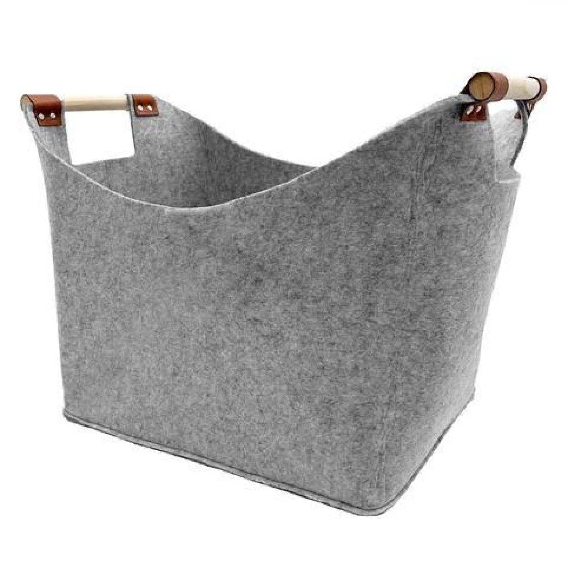 Tyylikäs ja vahva, ekologisesta huovasta valmistettu takkapuukori tukevilla puukahvoilla. Loistava valinta polttopuiden kantamiseen ja säilyttämiseen tai muuten vain sisustukseen. Värivaihtoehdot vaalean- ja tummanharmaa.