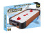 Pakkaus sisältää pelikentän (55 x 30,5 x 9 cm), kaksi mailaa ja kiekon.