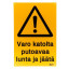 Huomiokyltti "Varo katolta putoavaa lunta ja jäätä".